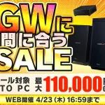 パソコン工房、ゲーミング・クリエイターPCが対象の『GWに間に合うセール』を開催