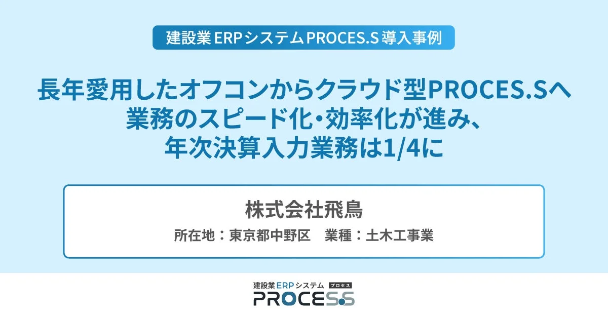 株式会社飛鳥、建設業ERPシステム「PROCES.S」導入で決算業務が1/4に短縮