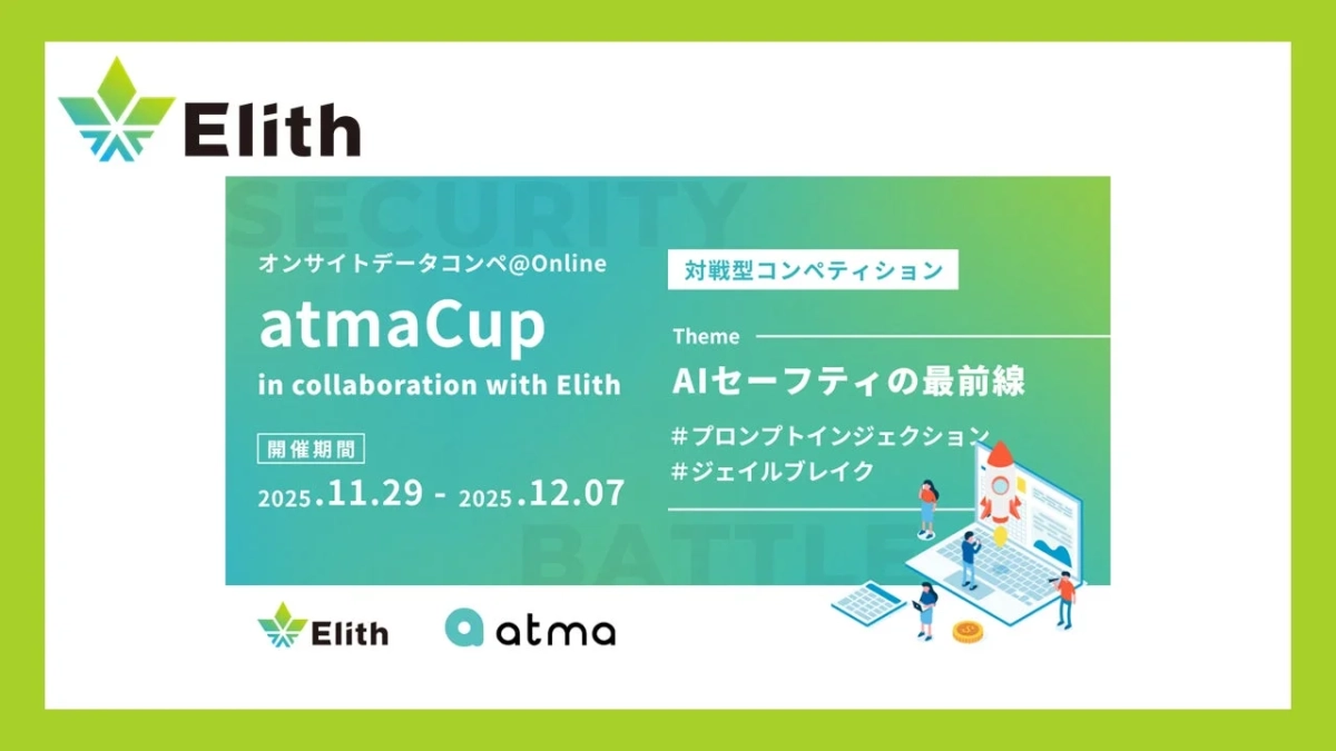 株式会社Elithとatma株式会社は、データコンペティション「第21回 atmaCup」の成果や解決方法を共有する「第21回 atmaCup 振り返り会」を共同で開催します。このイベントは2025年12月24日(水)の19時からオンラインで行われ、コンペティションに参加しなかった方でも無料で参加できます。