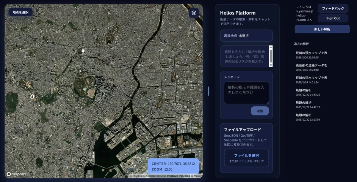 株式会社Heliosは、自然言語による対話型インターフェースを備えた地理空間解析プラットフォーム「Helios Platform(ヘリオス・プラットフォーム)」のβ版を、2026年2月2日(月)より提供開始しました。