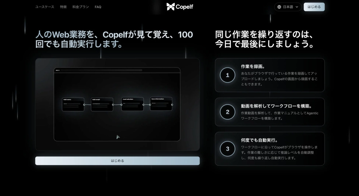 AIがWeb業務を「見て覚える」!新しい自動化ツール「Copelf(コペルフ)」が登場