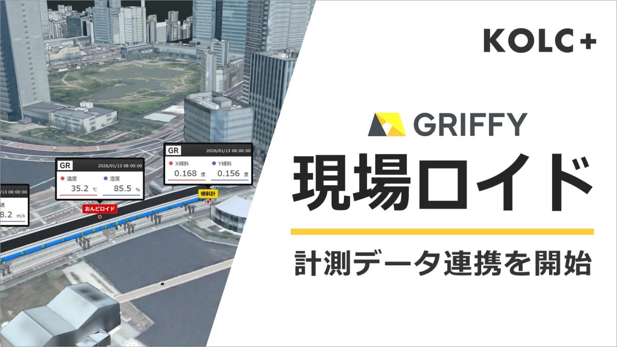 株式会社GRIFFYの建設現場向け計測サービス「現場ロイドクラウド」と、株式会社コルクが提供するBIM/CIMクラウド「KOLC+(コルクプラス)」が、データの連携を始めました。この連携により、「現場ロイドクラウド」で集められた現場の計測データが、「KOLC+」のデジタルツイン上で一覧表示できるようになります。